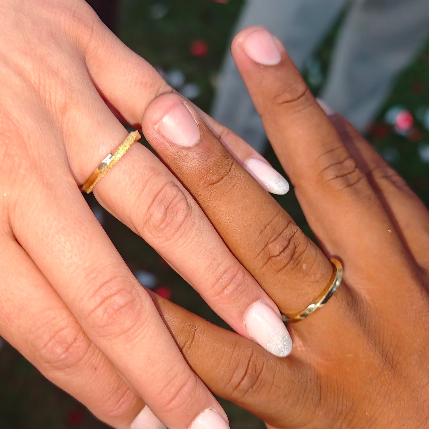 Attenzione, le nostre mani non sono perfettamente identiche, esempio: un anello che viene indossato all'anulare sinistro potrebbe non andare bene all'anulare destro. Questo succede nella maggior parte dei casi; Come modello di riferimento quindi prendi un anello che indossi allo stesso dito in cui porterai quello che acquisti; Accertati che l'anello scelto per la misurazione scorra abbastanza agevolmente per tutta la lunghezza del dito e soprattutto in prossimità delle articolazioni(nocca); Se hai la nocca grossa, misura sia la base del dito che la nocca stessa e scegli una taglia tra le due misure; Cerca di prendere come riferimento un anello che abbia una struttura simile a quella che acquisterai.